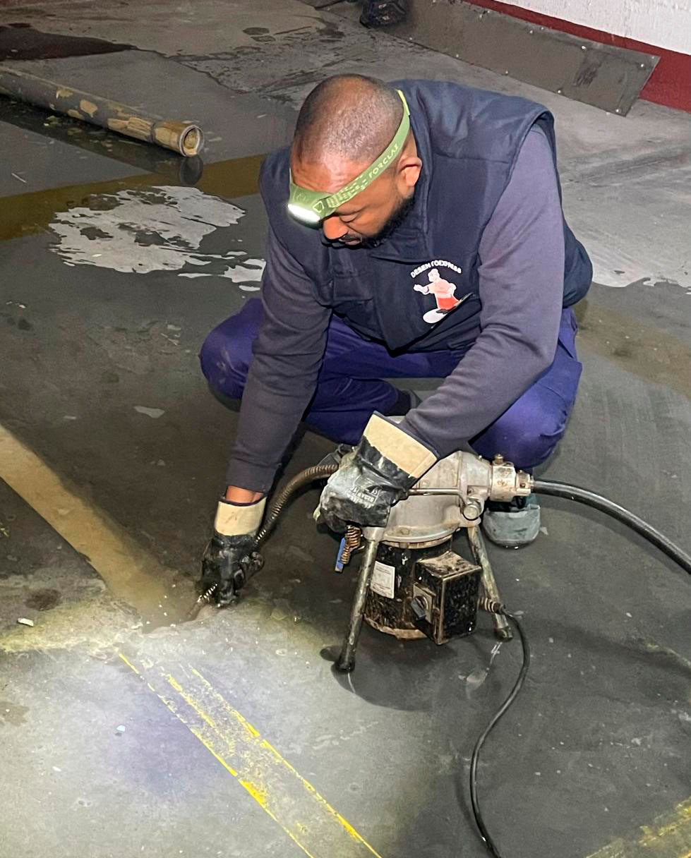 Os desentupimentos são executados de forma mecanizada, com recurso a sistemas elétricos rotativos, para desentupir tubagens de pequenos diâmetros em esgotos domésticos, sem danificar pisos ou paredes: